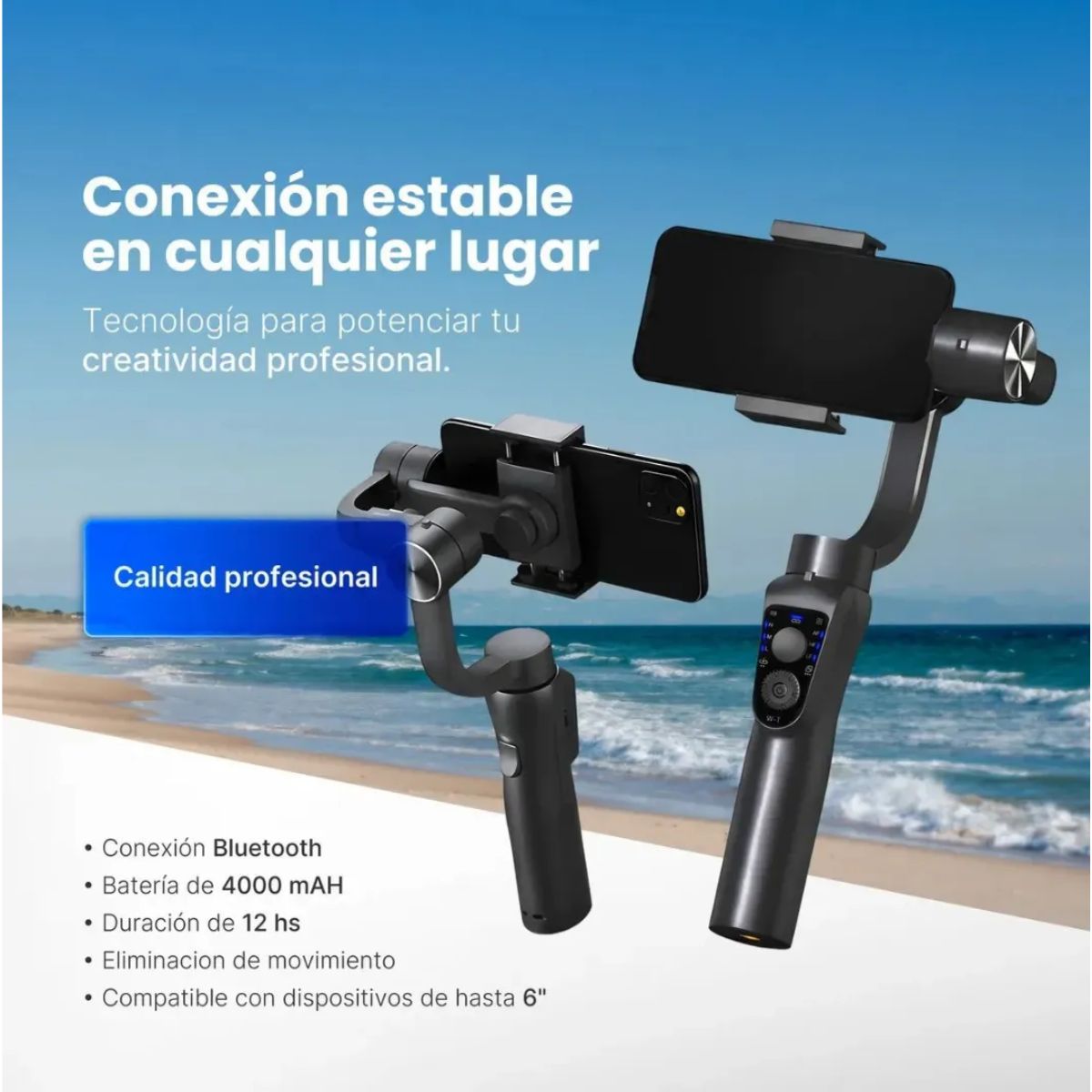 – Uso ideal: Fotos stable, videos sin vibración, vlogs, transmisiones en vivo