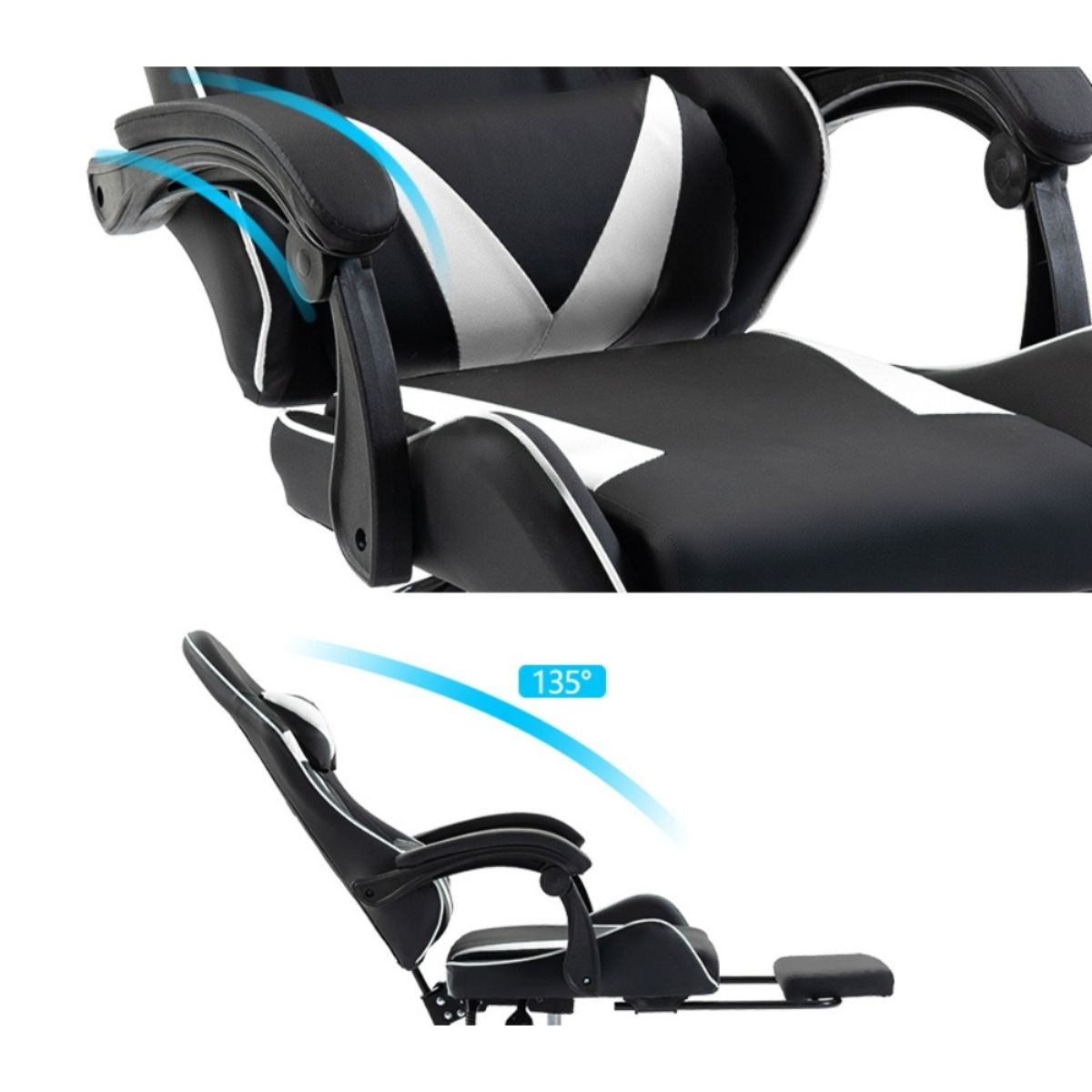 Tipo: Silla Gamer Color: Negro con detalles blancos
