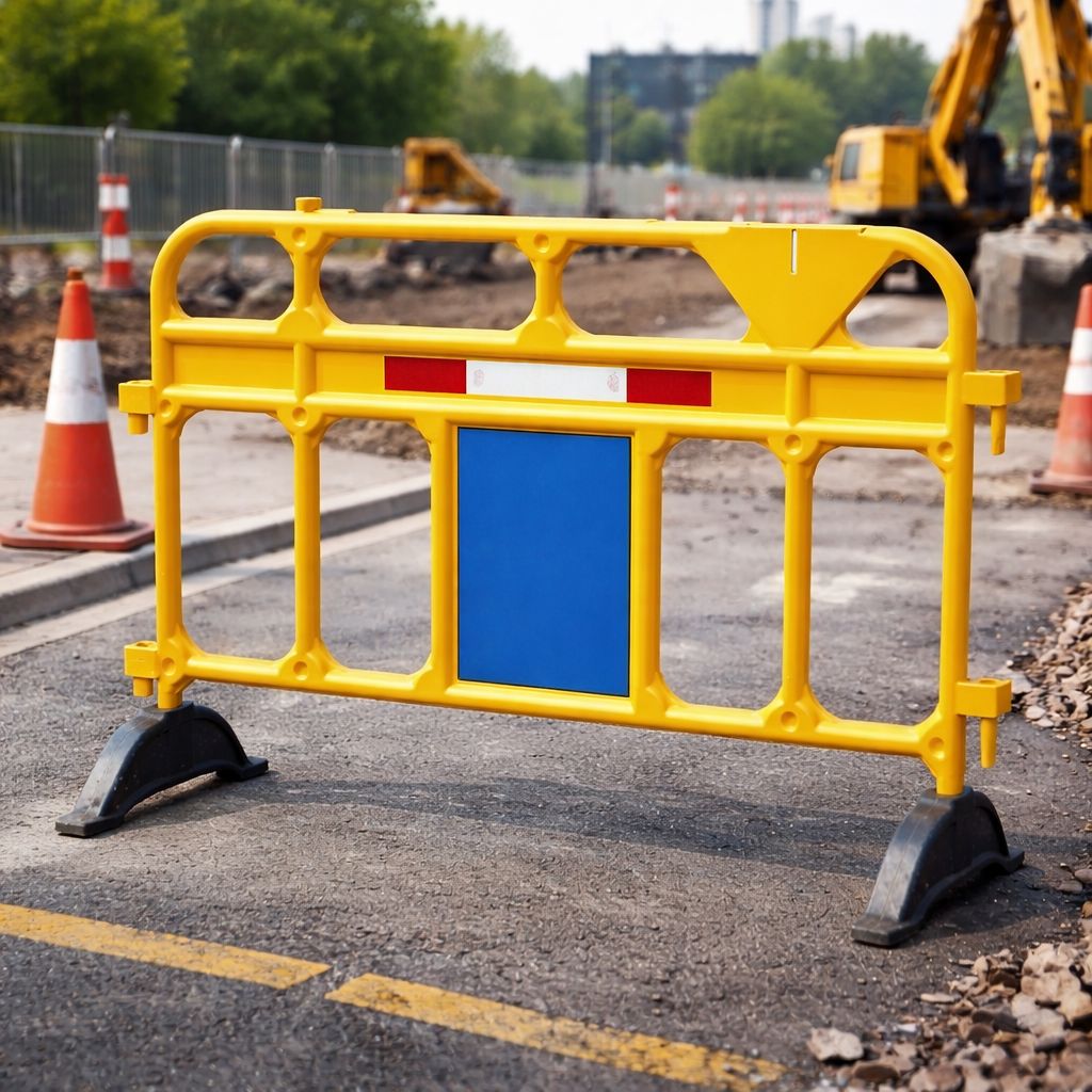 Valla de seguridad ideal para delimitar áreas de trabajo, señalizar zonas de riesgo y controlar el acceso en diferentes entornos. Su diseño resistente y liviano la convierte en una solución práctica para uso tanto interior como exterior.