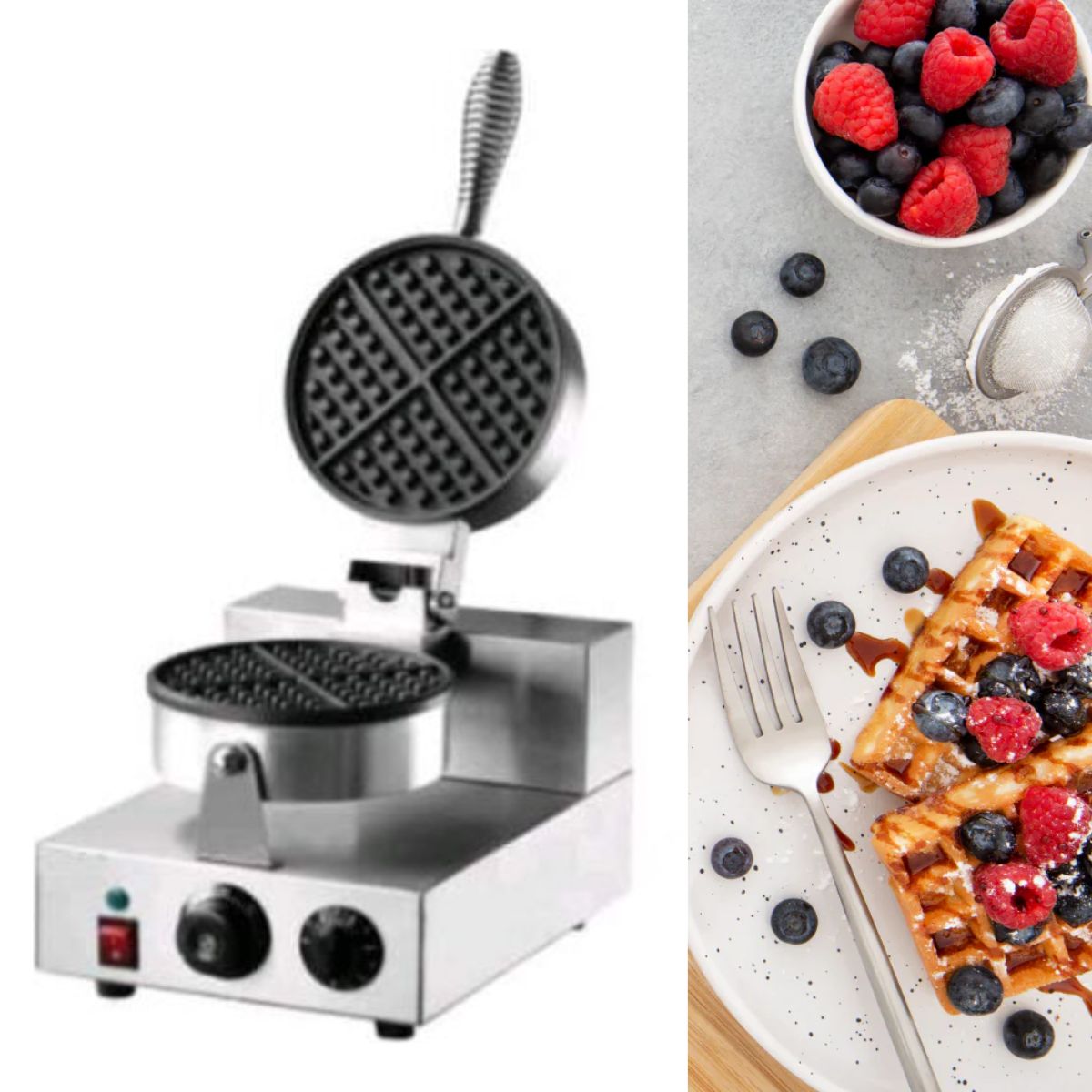 La Waflera Eléctrica Comercial de un disco y 1 kW es una máquina profesional diseñada para la producción de waffles de alta calidad en cafeterías, restaurantes, hoteles, food-trucks y negocios gastronómicos. Su construcción robusta y potencia adecuada permiten cocinar waffles de forma uniforme y rápida, facilitando el trabajo en ambientes de alta demanda